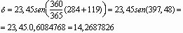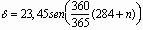 é a declinação da Terra, que é calculada pela fórmula:![]()