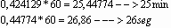 12+5,47305 = 17,4730 ou 17h 28min 23 seg