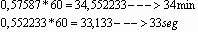 Passando 17,57587 para horas/minutos/segundos: