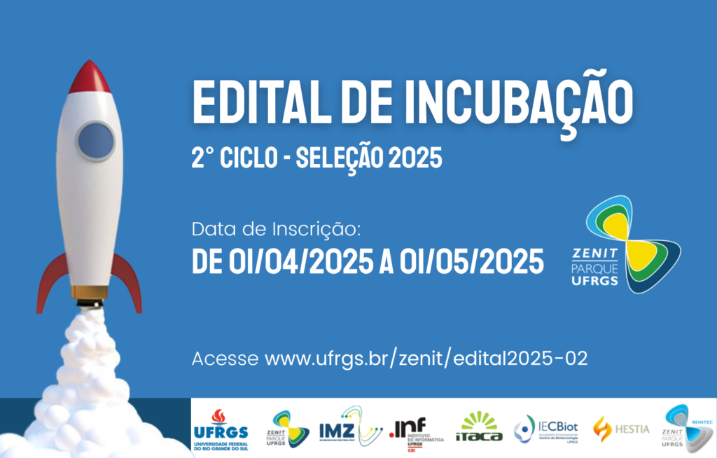 O Parque Zenit da Universidade Federal do Rio Grande do Sul (UFRGS) está com inscrições abertas para o 2º Ciclo do Edital de Incubação 2025, oferecendo oportunidades para empreendedores que desejam desenvolver projetos inovadores com o apoio das incubadoras da universidade. O período de inscrições vai de 1º de abril a 1º de maio de 2025.