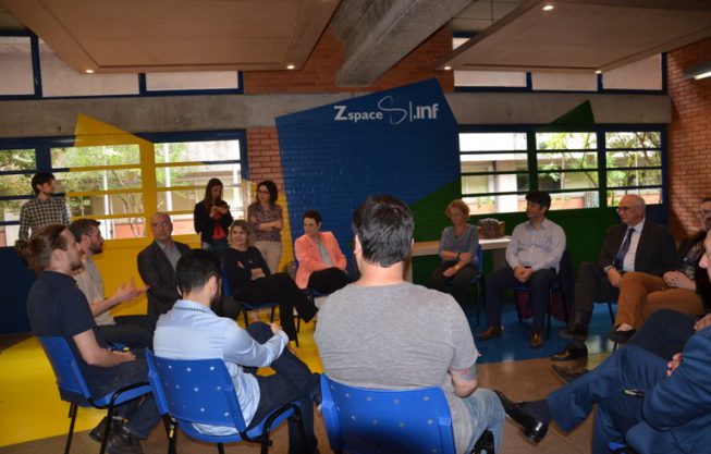 A visita prosseguiu no Centro de Empreendedorismo em Informática (CEI) do Campus do Vale, onde Barbosa Lima Júnior foi recebido pela diretora do Instituto de Informática, Carla Dal Sasso Freitas, e pelo diretor do Parque Zenit, Marcelo Lubaszewski. O diretor enfatizou o fato de que, atualmente, não existe negócio com chance de sucesso sem caráter transdisciplinar. Durante o encontro, houve uma rodada de apresentações de empresas incubadas no espaço-conceito criado para a oferta de atividades criativas no âmbito da inovação. Alan Velasques Santos, um dos sócios da empresa Cognitiva Brasil – Tecnologias Educacionais, falou do aplicativo Experter, voltado para a aprendizagem do inglês por meio da inteligência artificial. O software, em fase de testes em algumas escolas, permite otimizar o ensino do idioma.