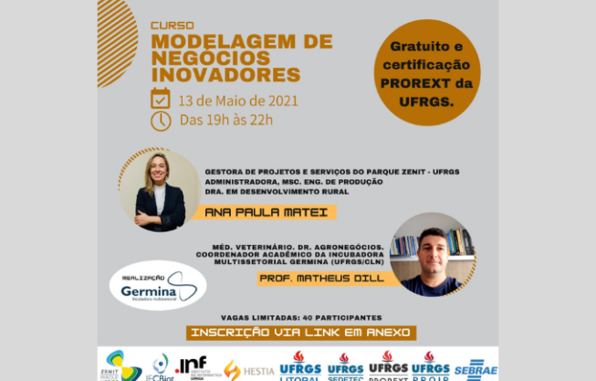 A Incubadora Multissetorial Germina irá oferecer gratuitamente um curso prático sobre Modelagem de Negócios. A capacitação proporcionará conhecimento aos futuros empreendedores e para aqueles já atuam no mercado, auxiliando na criação da empresa através da identificação do público-alvo “Para quem?”, proposta de valor “O que?”, recursos e atividades chave “Como?” e viabilidade do negócio “Quanto?”. Para isso, será utilizada ferramenta Business Model Canvas. O curso também é uma ótima oportunidade para quem tem interesse em participar do Edital da Unificado do Parque Zenit que selecionará pessoas interessadas em participar do processo de incubação de negócios nas Incubadora da UFRGS.