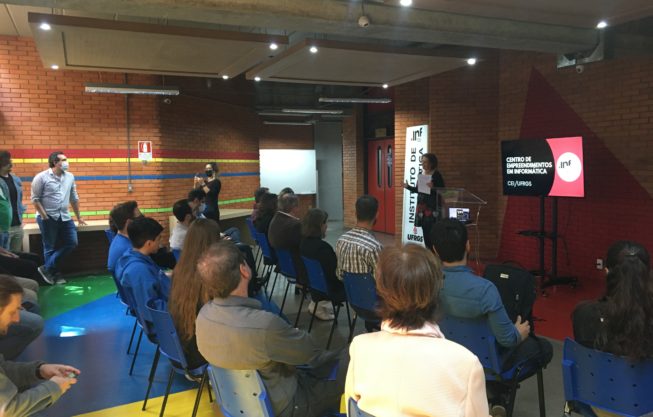 A cerimonia de graduação aconteceu no Zspace do CEI e contou com a presença de vários convidados, entre eles Geraldo Jotz (Pré-reitor da PROIR), Simone Stulp (secretaria adjunta da SCIT), Rafael Roesler (Diretor da FAPERGS), além de outras presenças especiais.