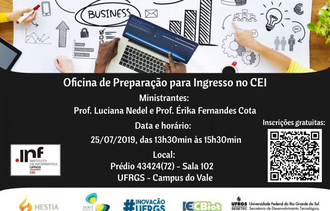 O Centro de Empreendimentos em Informática (CEI) há mais de 20 anos apoia a transformação de ideias empreendedoras em uma oportunidade empresarial concreta. A Oficina de Preparação para o ingresso no CEI é gratuita e destinada a estudantes, startups, empreendedores e demais interessados em desenvolver e investir no seu próprio negócio. A incubadora está focada na área de Tecnologia da Informação e Comunicação (TIC) e proporciona um ambiente fértil para o desenvolvimento sólido de novas empresas.