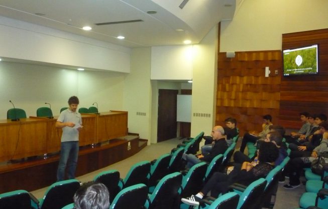 Paulo Vitor Silvestrin, representante da startup AEGRO – Colhendo Conhecimento, incubada no Centro de Empreendimentos em Informática – CEI, ministrou a palestra sobre “Como se tornar um empresário depois da graduação”, no Portas Abertas do INF-UFRGS que aconteceu no dia 14 de maio, sábado, no auditório do prédio 43413(67).