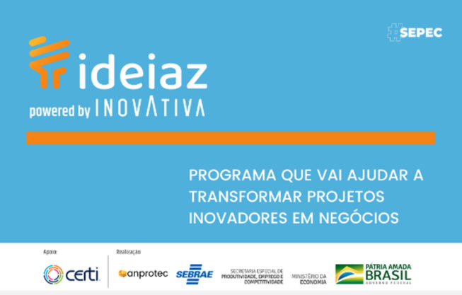O Programa Ideiaz é uma iniciativa desenvolvida pelo Sebrae, a Anprotec e a Secretaria Especial de Produtividade e Competitividade do Ministério da Economia (Sepec/ME), que visa apoiar a estruturação e desenvolvimento de projetos inovadores em estágio inicial e projetos de empreendimentos de impacto socioambiental também em estágio inicial, através da conexão desses projetos com incubadoras e aceleradoras credenciadas para o Programa.