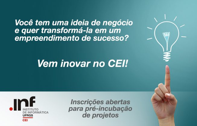 Você tem uma ideia de negócio e quer transformá-la em um empreendimento de sucesso? Então, vem para o CEI! Até o dia 31 de março, estamos com inscrições abertas para pré-incubação de projetos na área de Tecnologia de Informação e Comunicação.