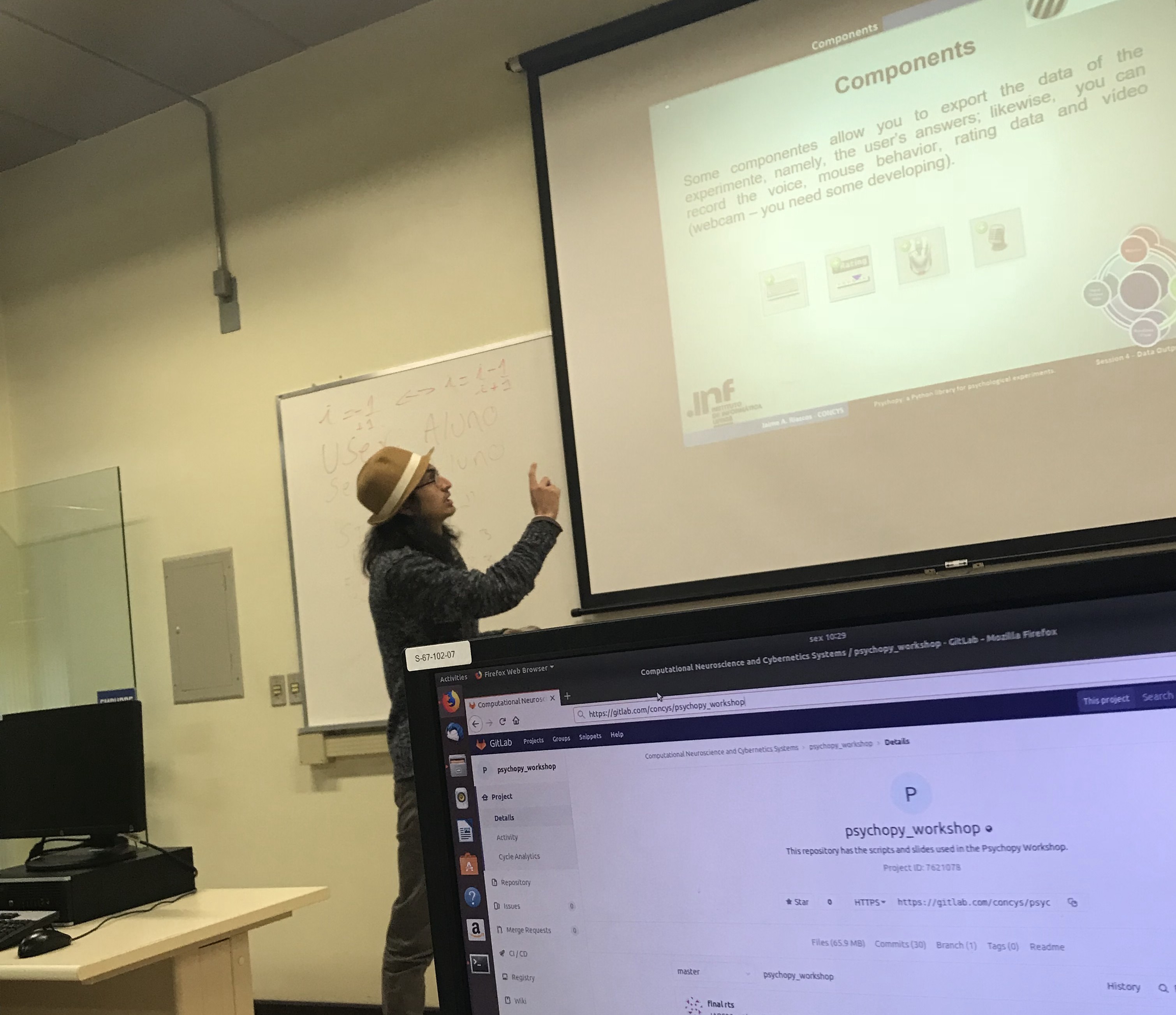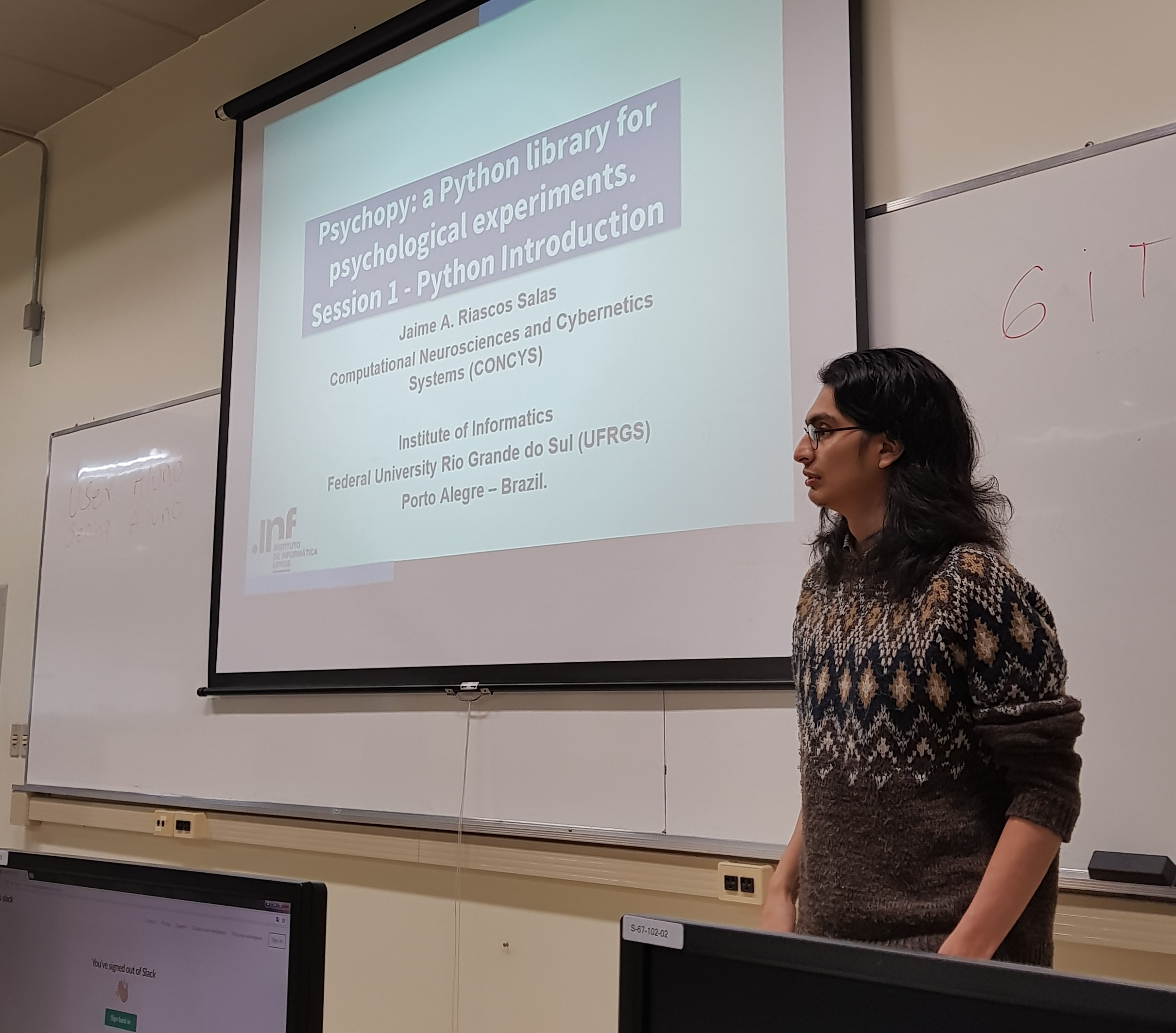 Last week, Concys lab offered a winter course about PsychoPy. In this occasion, we had around 15 students with different backgrounds (Psychology, Engineering, Computer Science,Linguistics, among others). The aim was to present as simple as possible the library as well an introduction to Python programming. Each session (five in total) had a theoretical instruction and a hands-on section. All documentation, slides, scripts and PsychoPy files can be found in the repository. This course was taught and developed by our master student Jaime A. Riascos.