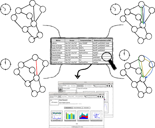 This Work Group is developing a system to analyze the data collected by the existing monitoring tools present in the IPÊ network and applying Big Data Analytics techniques to offer several relevant information to aid the operational management, traffic engineering, and network planning. The system will provide automatized correlations and categorizations, personalized user profiles based on different aspects, interactive filtering and manipulation, root-cause analysis to network events, statistics over traffic engineering efficiency and the ability to analyze the impact of changes in the network.