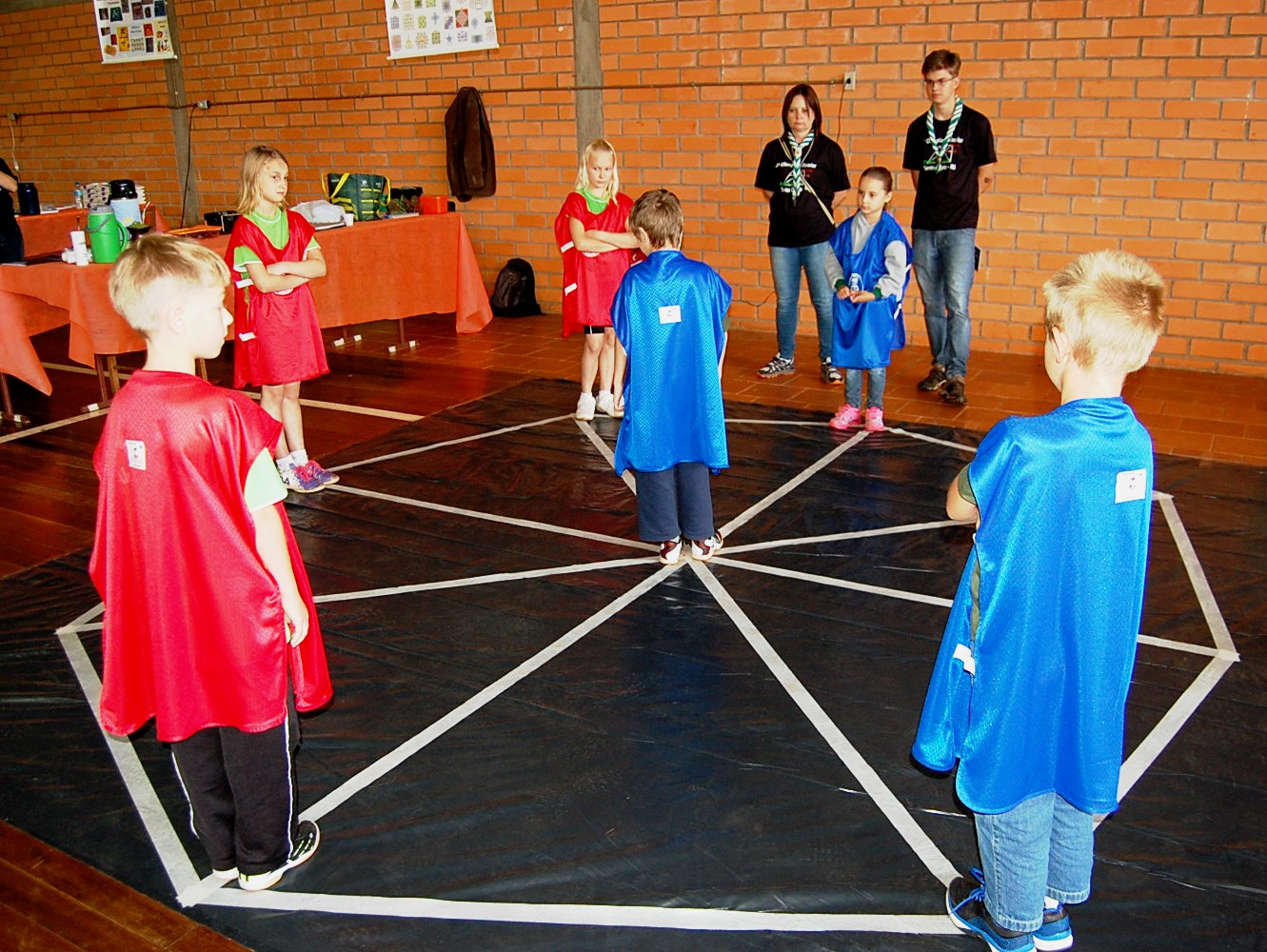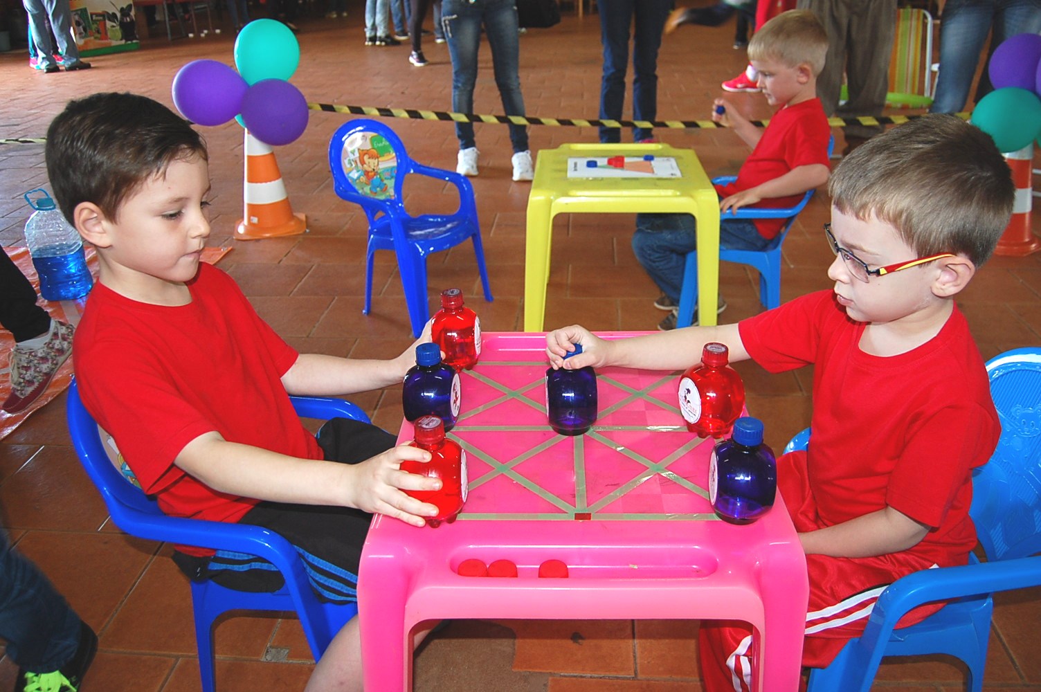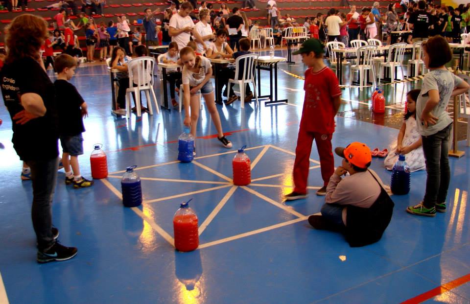 São preparados vários “campos” com diferentes composições de jogos. No decorrer da Olimpíada cada escola acaba jogando em campos diferentes, de acordo com o sorteio da tabela de jogos. Isso evita (ou ao menos dificulta) uma certa especialização das equipes em relação aos jogos presentes nos campos, mas precisam se adaptar e distribuir da melhor forma possível os seus jogadores no campo da disputa. Temos definido 4 categorias, segundo as faixas etárias do alunos, desde a educação infantil (onde as atividades são conduzidas de forma mais lúdica do que competitiva) até os anos finais do ensino fundamental (categoria A: 7º – 9º anos, categoria B: 4º – 6º anos, categoria C: 1º – 3º anos, categoria D: educação infantil).