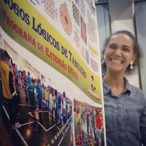 A exposição de materiais didáticos foi à forma escolhida para apresentarmos o trabalho desenvolvido pelo Projeto de Extensão LoBoGames da UFRGS. Encontramos no evento uma professora multiplicadora, atuante na cidade de Porto Alegre e fruto de um dos nossos cursos de formação, além de divulgar suas imagens aos demais, a mesma contribuiu contando-nos como tem feito para levar o projeto adiante, pinturas que foram feitas nas quadras da escola, um projeto integrador e auxílio de professores de outras áreas foram algumas contribuições relatadas pela Profa. Andressa.