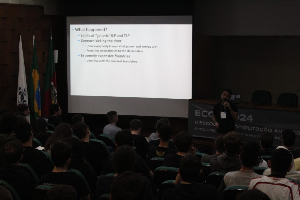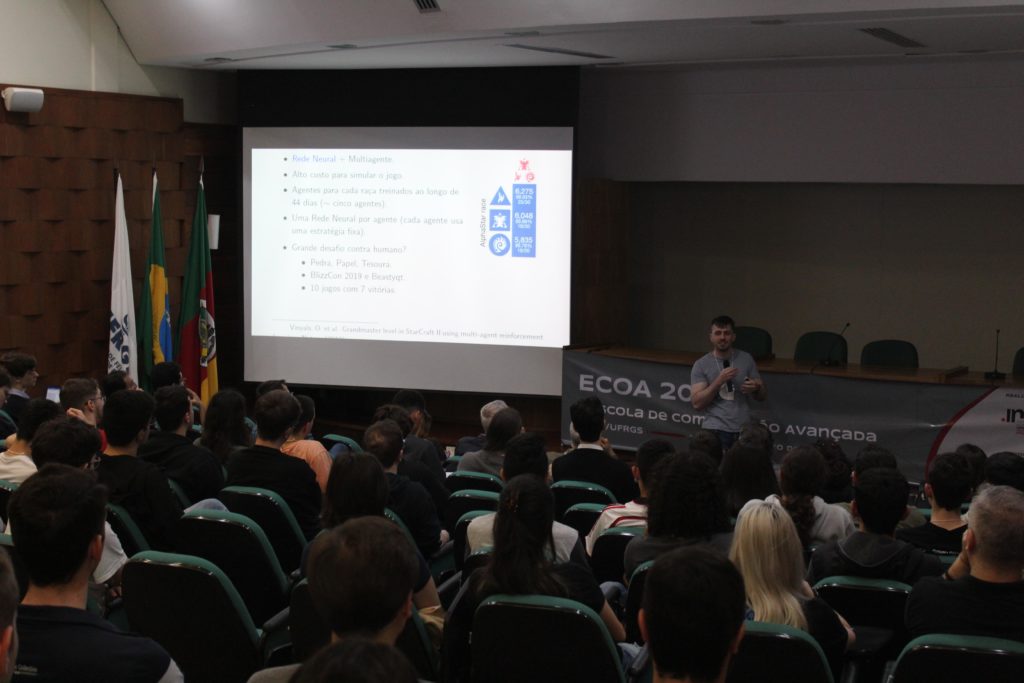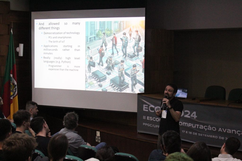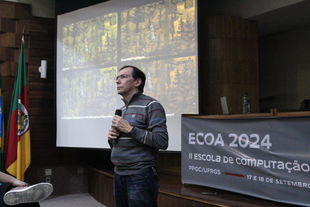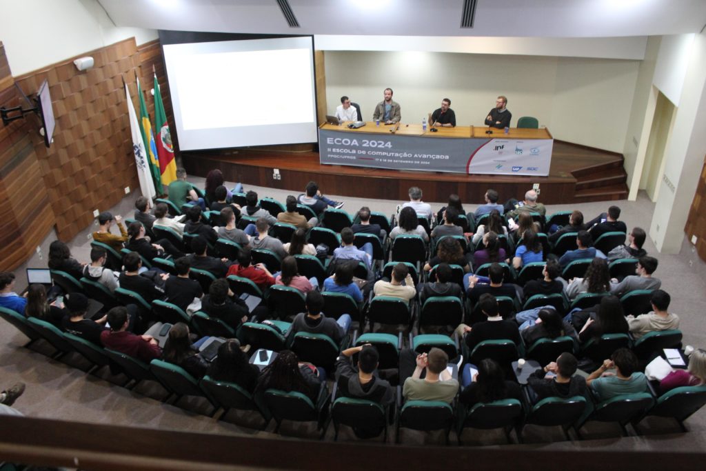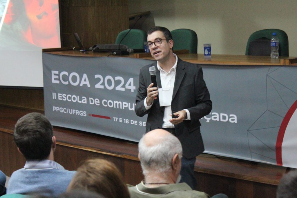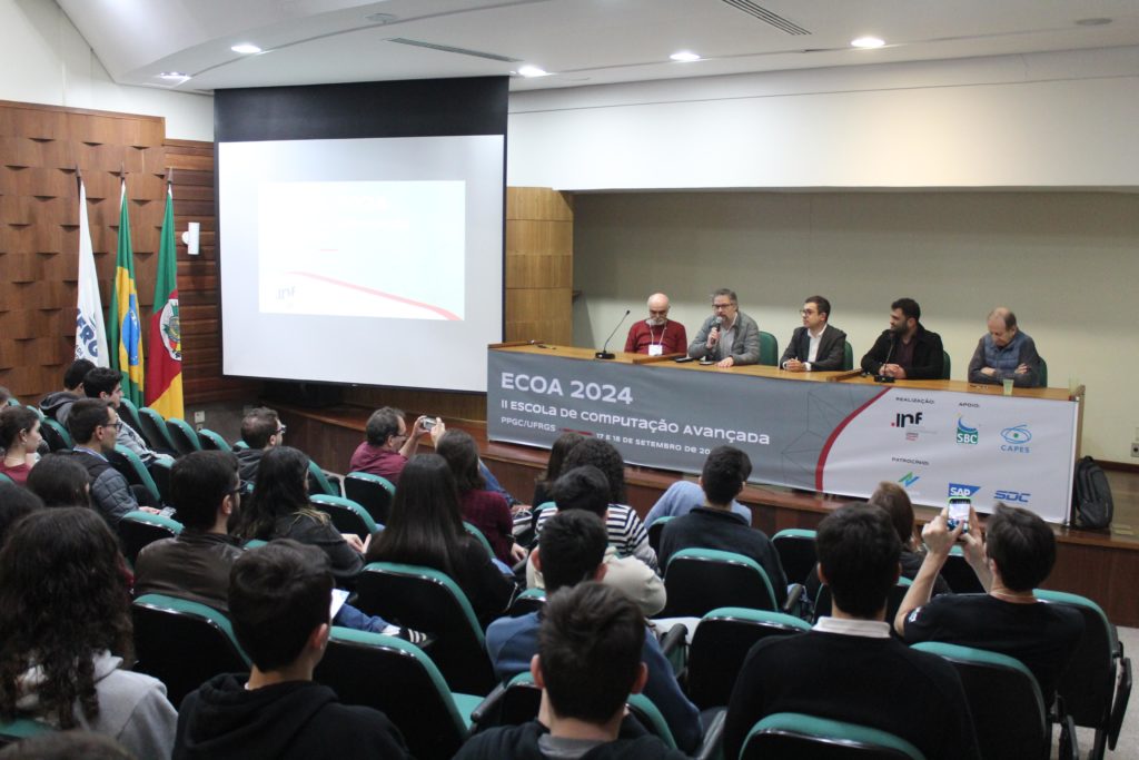 Nos dias 17 e 18 de setembro, o Programa de Pós-Graduação em Computação (PPGC) do Instituto de Informática (INF) da UFRGS realizou a segunda edição da Escola de Computação Avançada (ECOA 2024) no Centro de Eventos do Instituto de Informática. O evento, que contou com atividades durante os turnos da manhã e tarde, ofereceu um ambiente de aprendizado e discussão sobre os avanços da Computação, abordando questões fundamentais para o futuro da área. Alunos de graduação, pós-graduação, docentes e a sociedade em geral tiveram a oportunidade de explorar tópicos de ponta, discutidos por renomados especialistas.