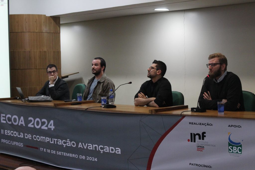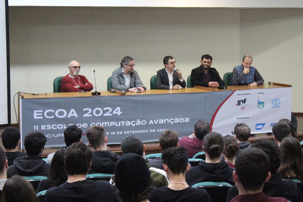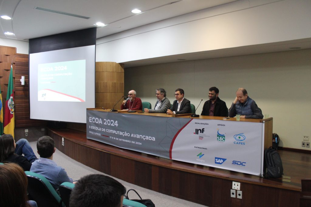 Além das palestras, a ECOA 2024 também promoveu três painéis. O primeiro reuniu egressos doutores formados pelo PPGC que alcançaram sucesso no mercado de trabalho. O segundo trouxe grandes nomes de chefias de empresas conceituadas na área da Computação, compartilhando suas experiências e perspectivas sobre o setor. Já o terceiro painel discutiu os desafios e as perspectivas da pesquisa em Computação nos últimos 10 anos, oferecendo uma visão abrangente sobre o impacto e a evolução da área.