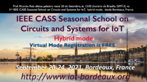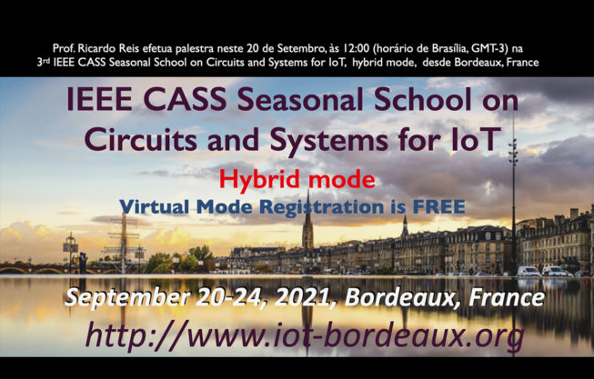 O Prof. Ricardo Reis irá ministrar uma palestra no dia 20 de setembro, às 12:00 (horário de Brasília, GMT-3) na 3rd IEEE CASS Seasonal School on Circuits and Systems for IoT, hybrid mode, Bordeaux, France.