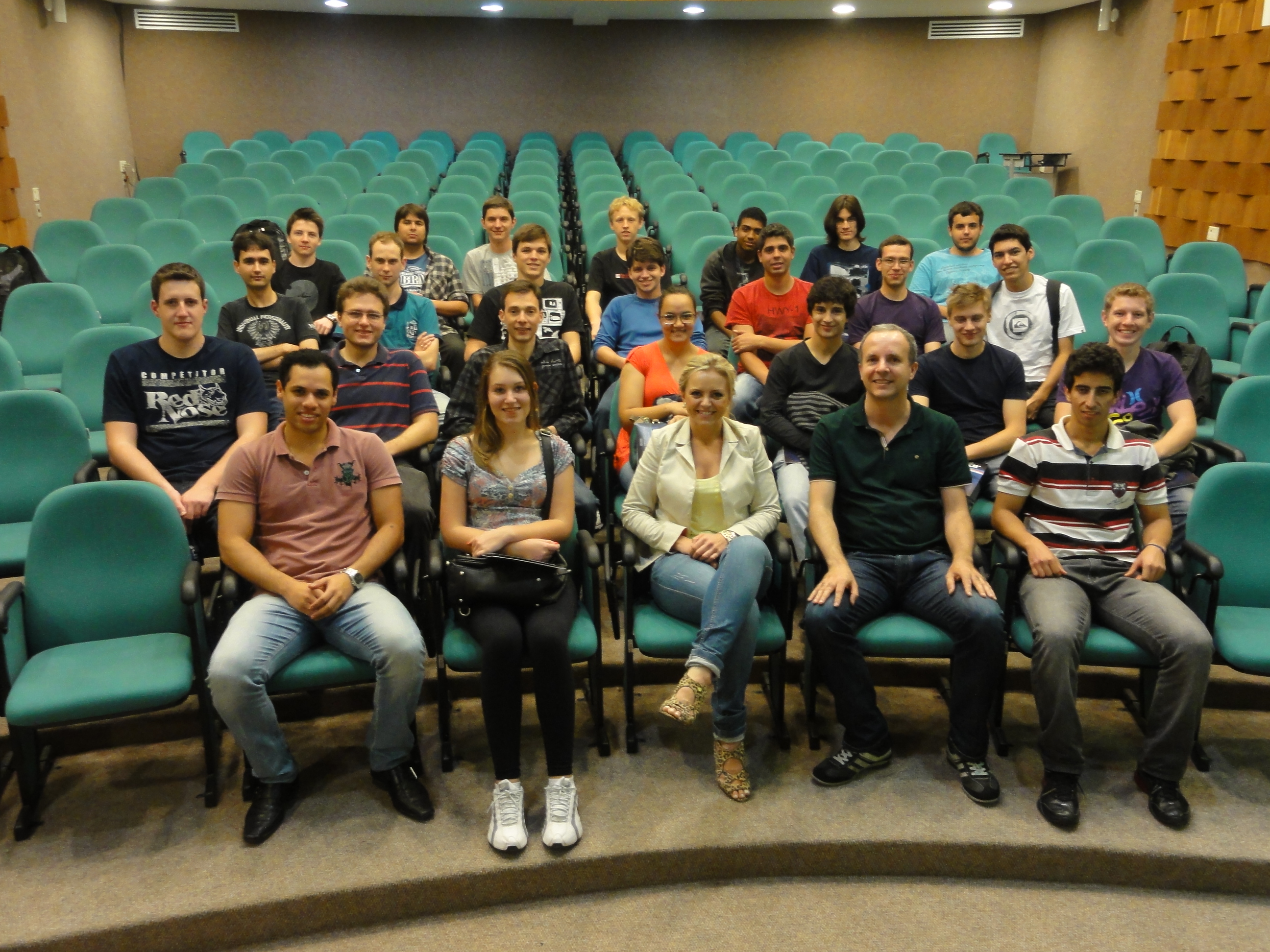 Uma delegação de alunos dos Cursos de Ciência da Computação e Engenharia de Computação da Universidade de Santa Cruz do Sul – UNISC, acompanhados da professora Andréa Aparecida Konzen, assistiram a palestra do prof. Ruy de Queiroz, da Universidade Federal de Pernambuco, sobre Problemas Decidíveis e Problemas Indecidíveis: O Legado de Alan Turing, que fez parte do Ciclo de Palestras em homenagem ao centenário de Alan Turing, organizado pelo Instituto de Informática.