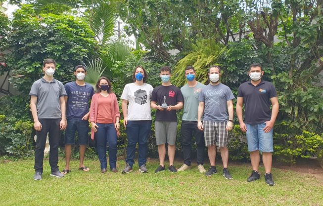 A equipe é composta por Brayan Barbosa (Biomedicina), Eduardo Peretto (Ciência da Computação), Lucas Dal Castel (Eng. Elétrica), Luiz Felipe de Moura (Eng. de Cont. e Automação) e Mateus Schein (Eng. de Cont. e Automação) e coordenada pelos professores José Rodrigo Azambuja (INA), Mariana Mendoza (INA) e Weverton Cordeiro (INA).