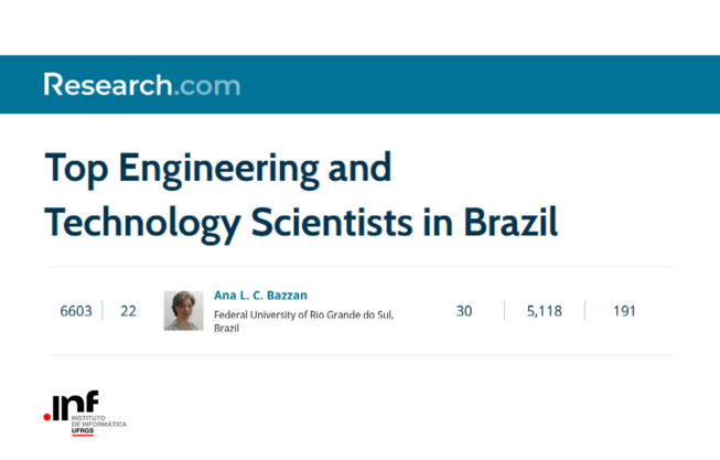 A Professora do Instituto de Informática Ana Lucia Cetertich Bazzan foi listada entre as melhores cientistas no ano de 2022. A Research.com, uma plataforma acadêmica de destaque para cientistas, adicionou o seu perfil ao banco de dados de cientistas líderes na área de engenharia e tecnologia, ocupando o 22º lugar no ranking nacional e 6603º no ranking mundial.