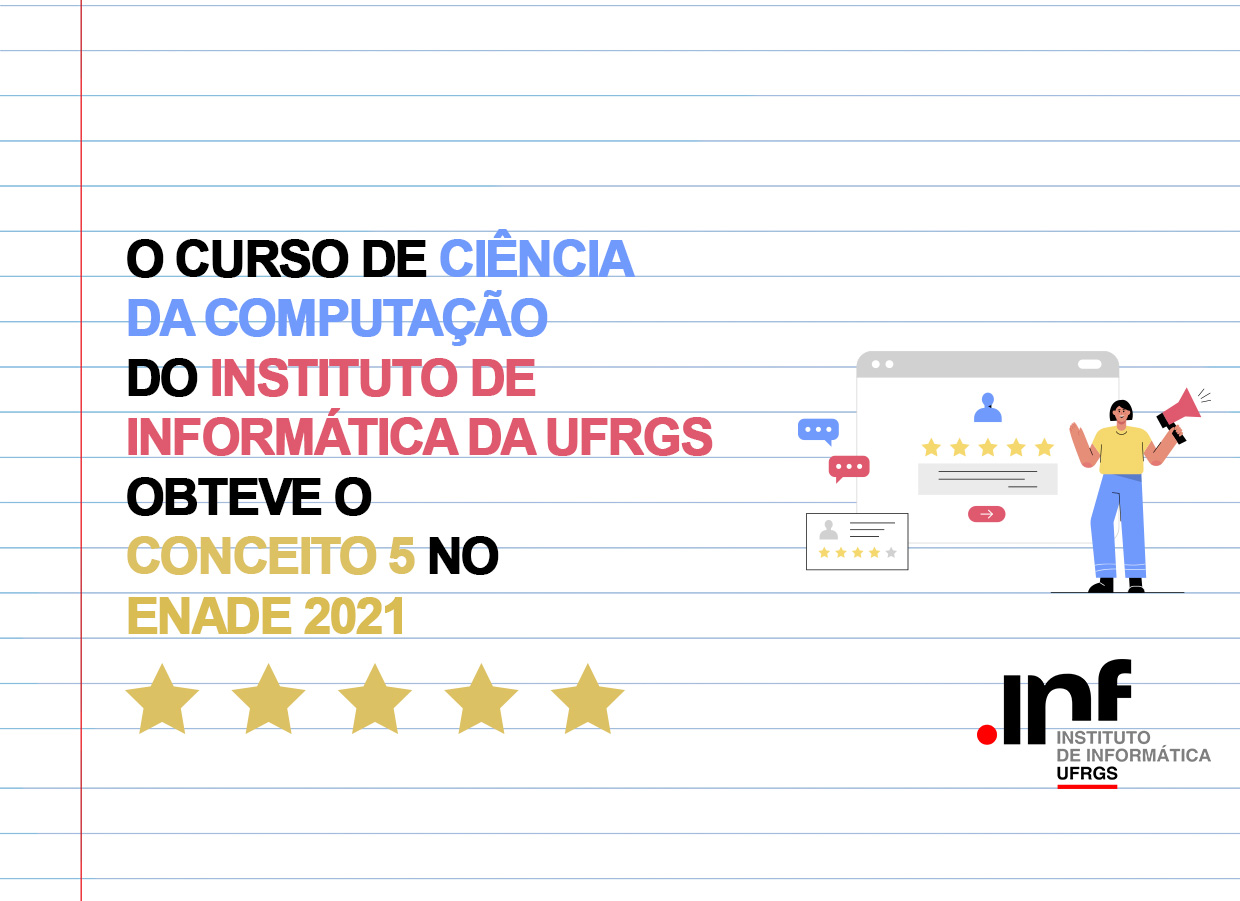 O curso de Ciência da Computação do Instituto de Informática da UFRGS obteve o conceito 5 no ENADE 2021, sendo o único no Estado do Rio Grande do Sul.
