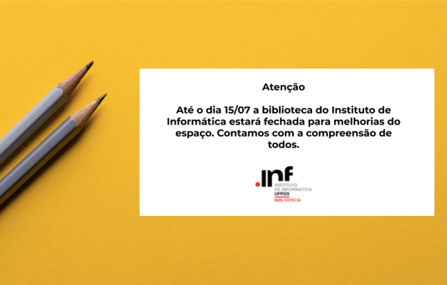 A Biblioteca do INF estará fechada até o dia 15/07 para melhorias no local. Confira aqui maiores informações.