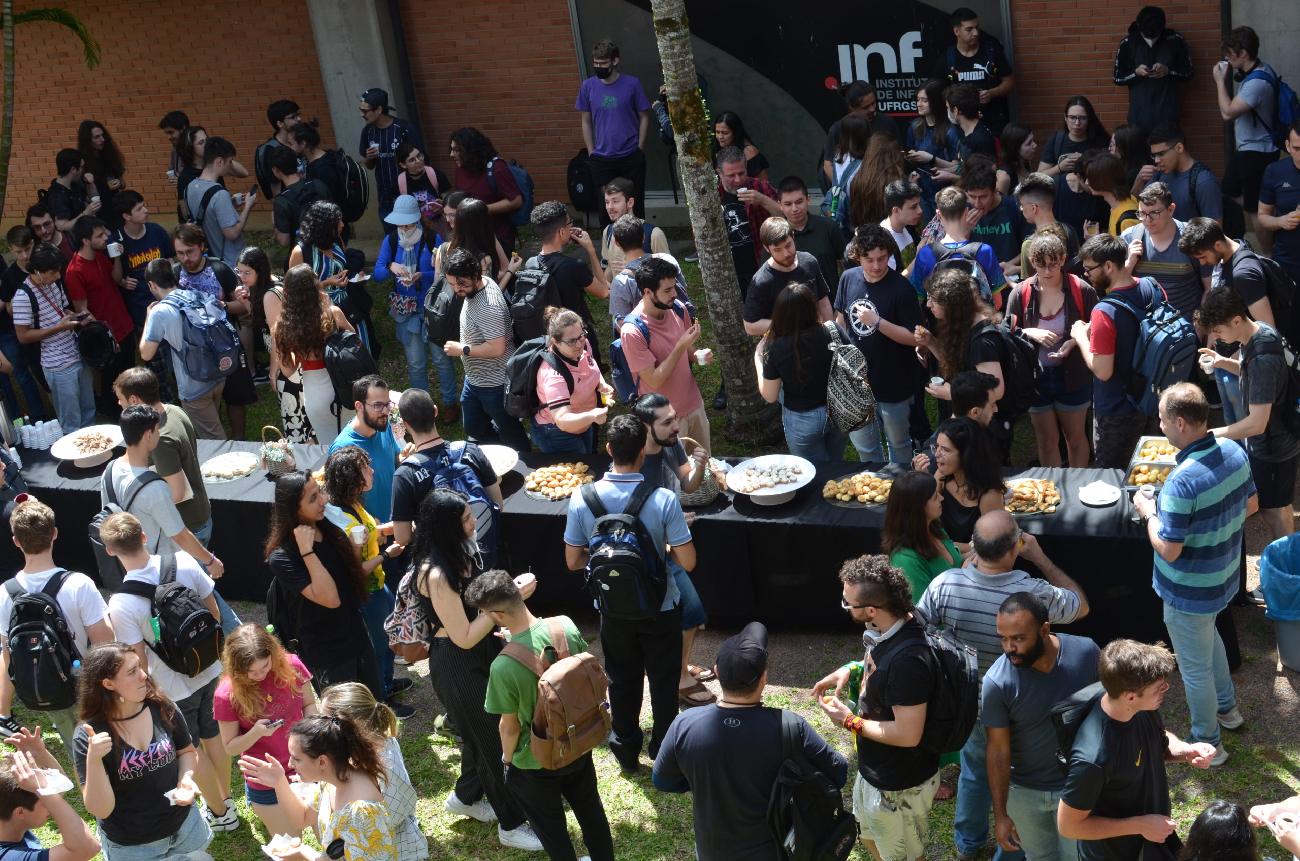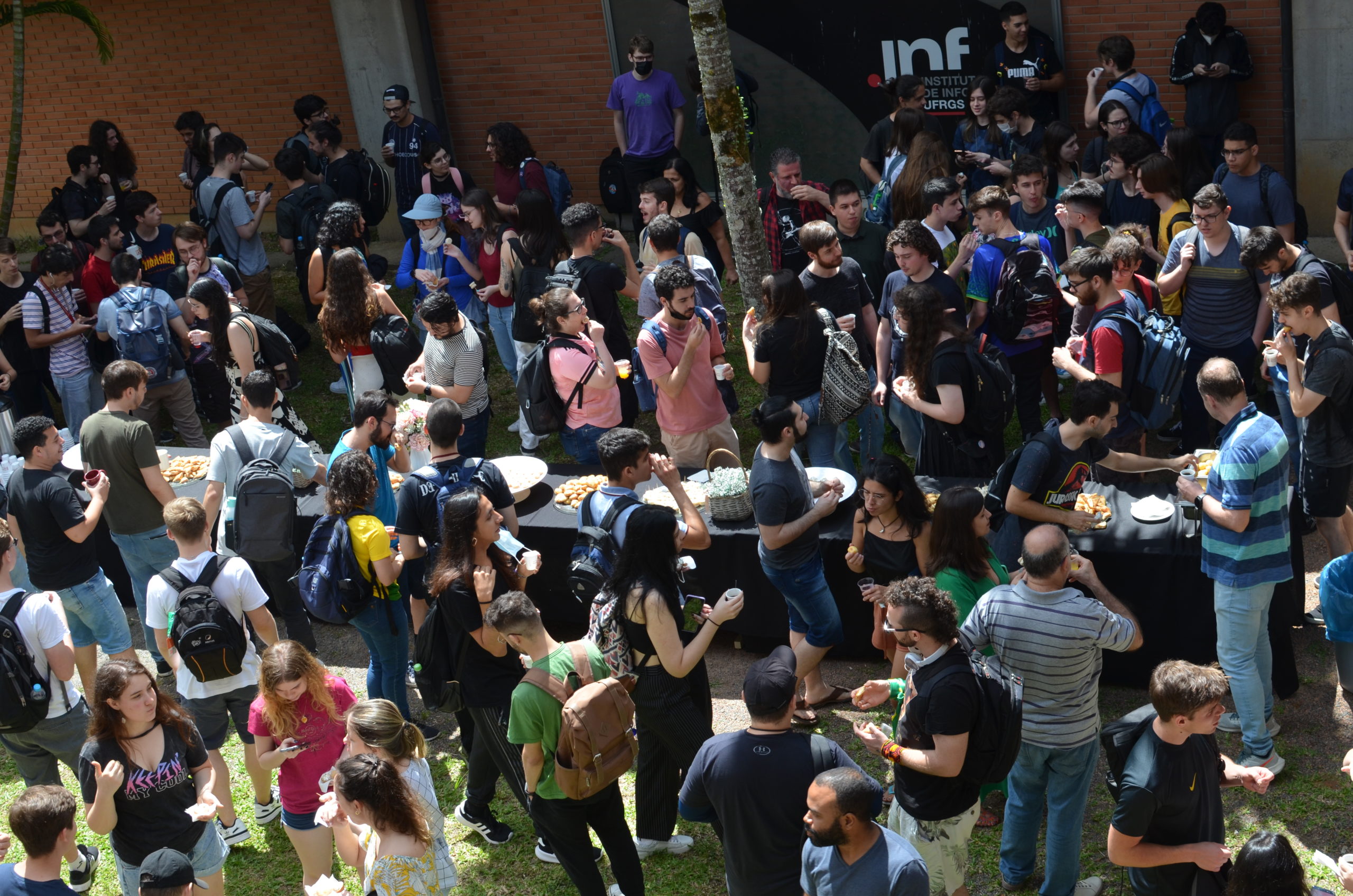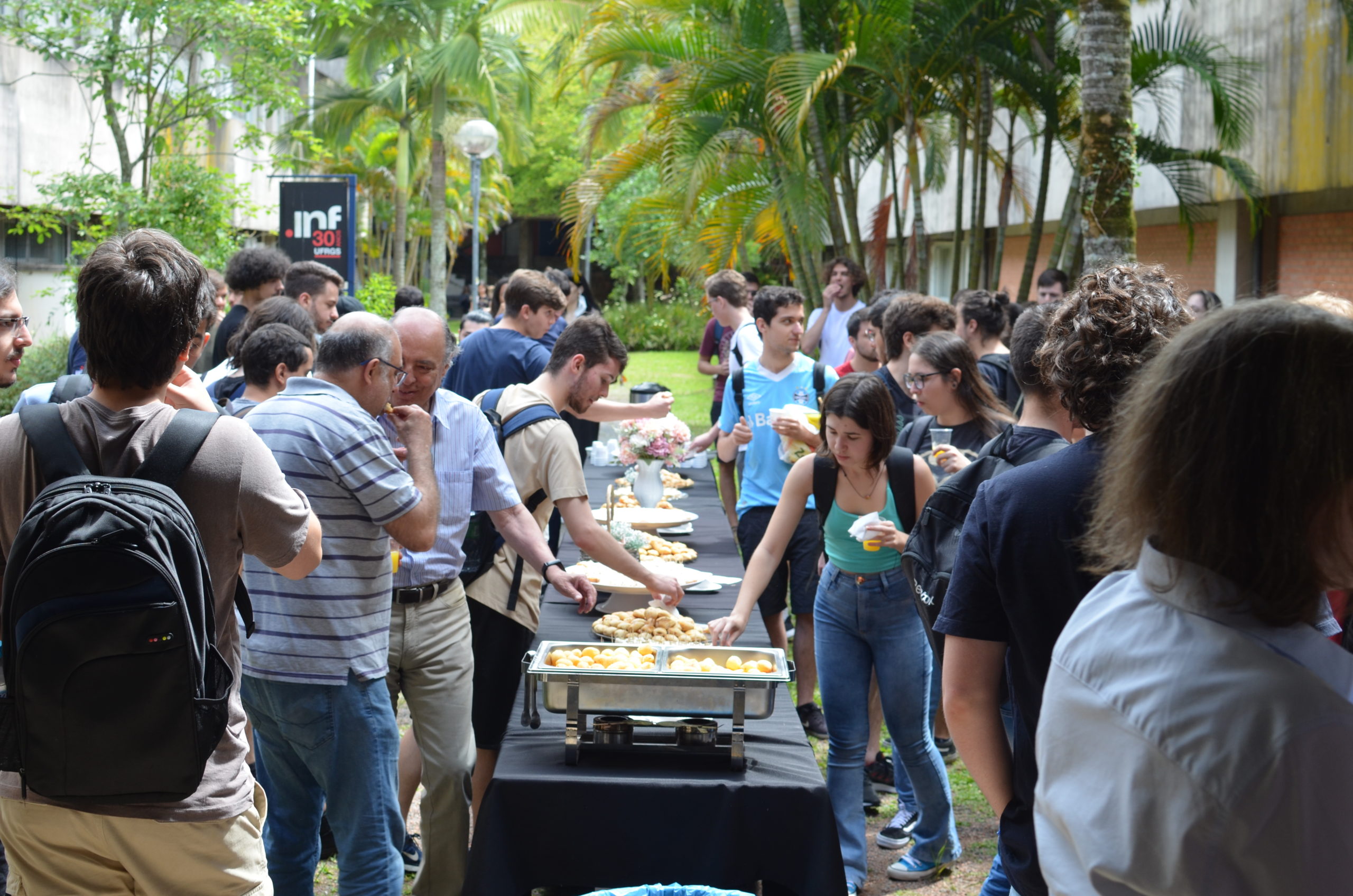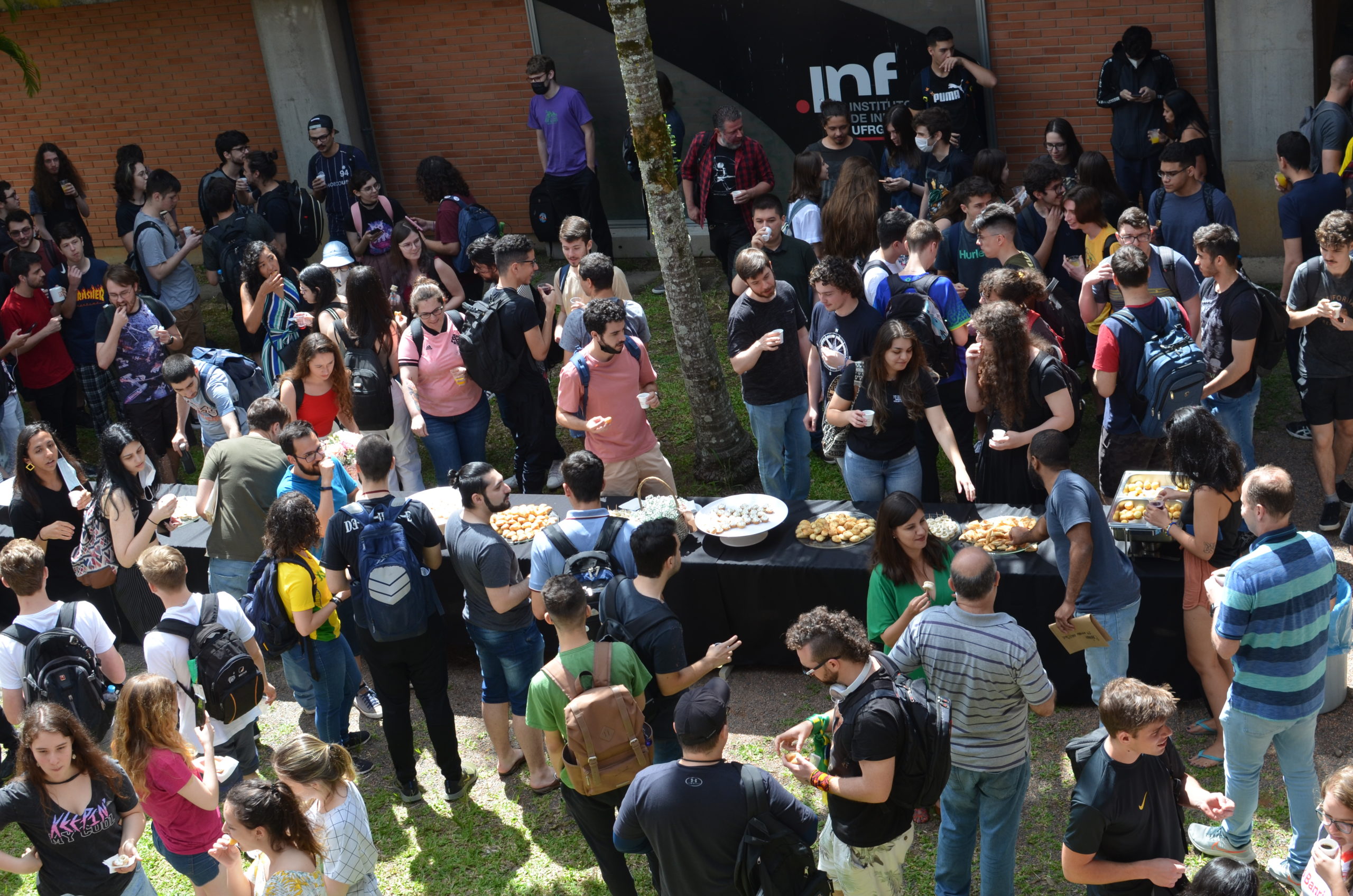 Na manhã da última quinta-feira, 24/11, um café da manhã abriu oficialmente o semestre 2022/2 no Instituto de Informática. Alunos, professores e servidores puderam confraternizar e celebrar o início do semestre e, também, os 33 anos do INF. O café de confraternização ocorreu em frente aos prédios 43.425 e 43.424.