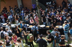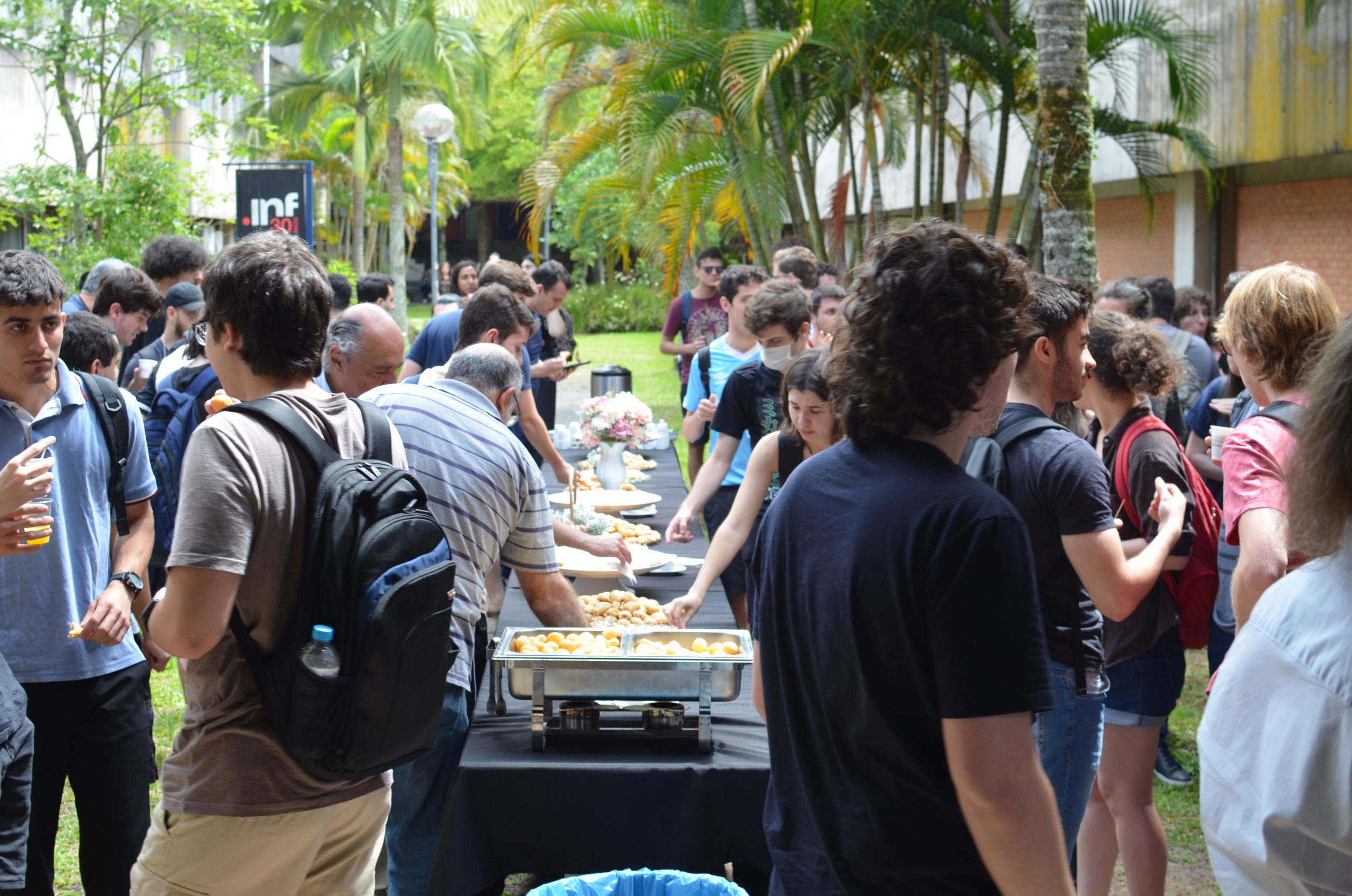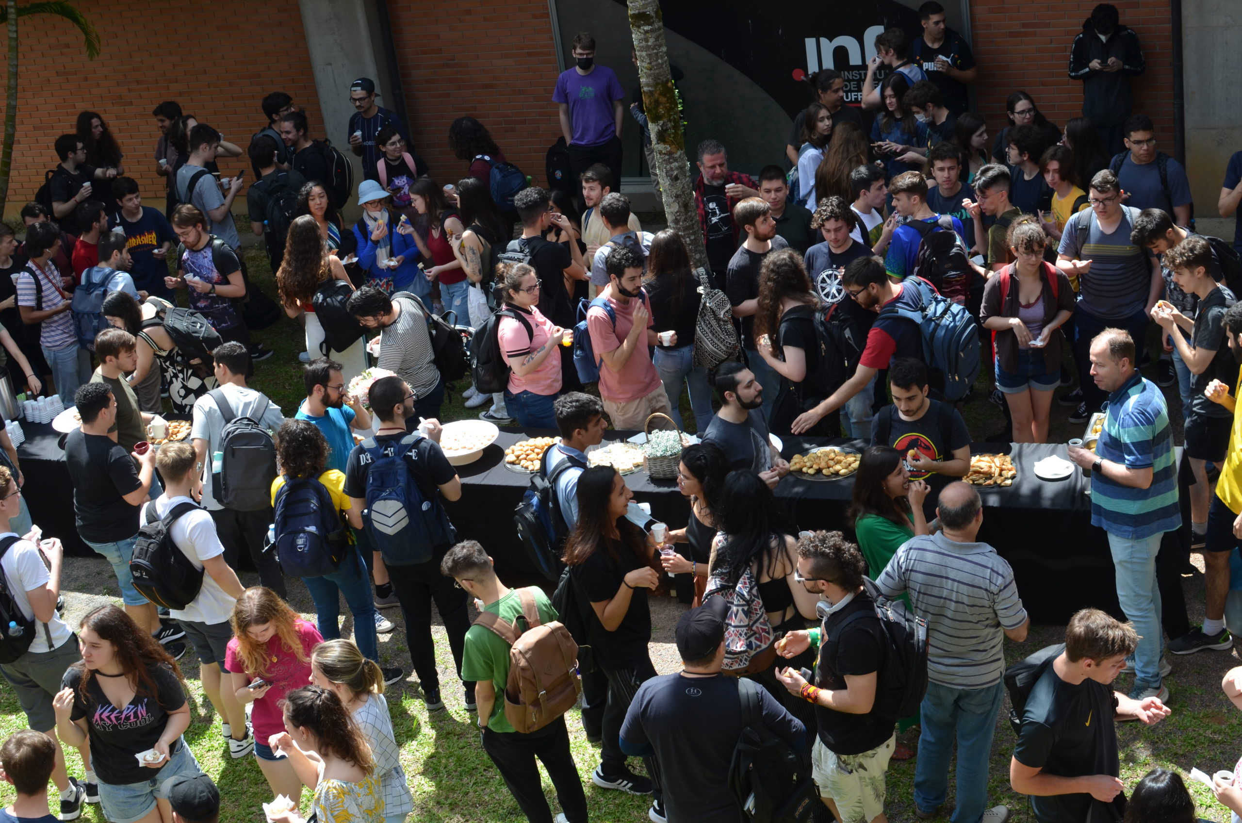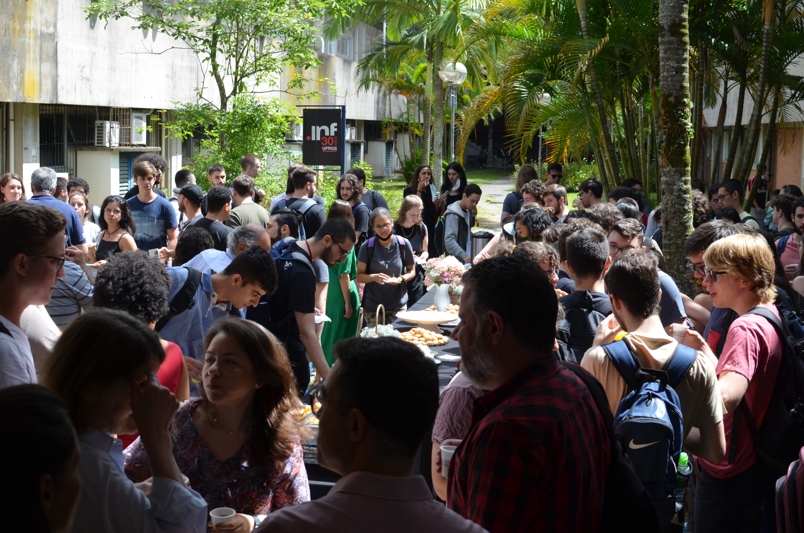 Na manhã da última quinta-feira, 24/11, um café da manhã abriu oficialmente o semestre 2022/2 no Instituto de Informática. Alunos, professores e servidores puderam confraternizar e celebrar o início do semestre e, também, os 33 anos do INF. O café de confraternização ocorreu em frente aos prédios 43.425 e 43.424.