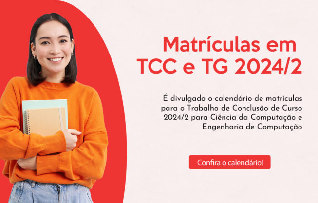 É divulgado o calendário de matrículas para o Trabalho de Conclusão de Curso 2024/2 para Ciência da Computação e Engenharia de Computação. Detalhes sobre a entrega do TCC e TG2, solicitação de créditos complementares e passos para solicitação de colação de grau serão enviadas posteriormente para os matriculados. Abaixo estão disponíveis os calendários e orientações especificas para cada trabalho.