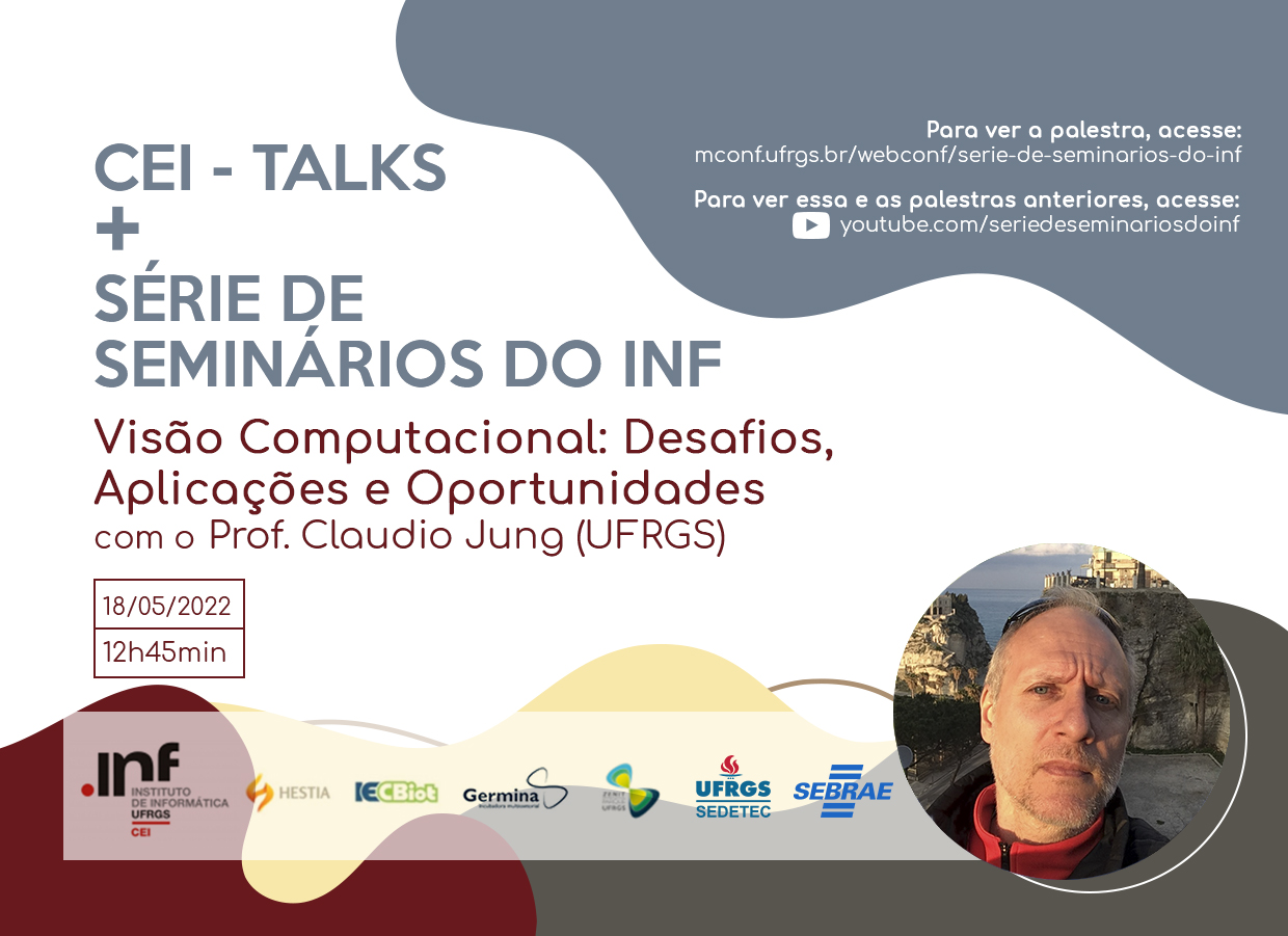 Claudio Jung possui doutorado em Computação (2002), é professor do INF/UFRGS desde 2009 e atuou como Professor Visitante na University of Pennsylvania entre 2015 e 2016. É editor associado do periódico IEEE Transactions on Image Processing desde 2021, membro da SBC desde 2005 e senior member do IEEE desde 2011. Possui diversos interesses de pesquisa relacionados a processamento de imagens, visão computacional e reconhecimento de padrões, tais como sistemas de apoio ao motorista e inspeção de rodovias, rastreamento de objetos, detecção de eventos em sequências de vídeo, modelagem 3D multimodal, processamento de imagens esféricas, deep learning aplicado a imagens e dados multimodais.