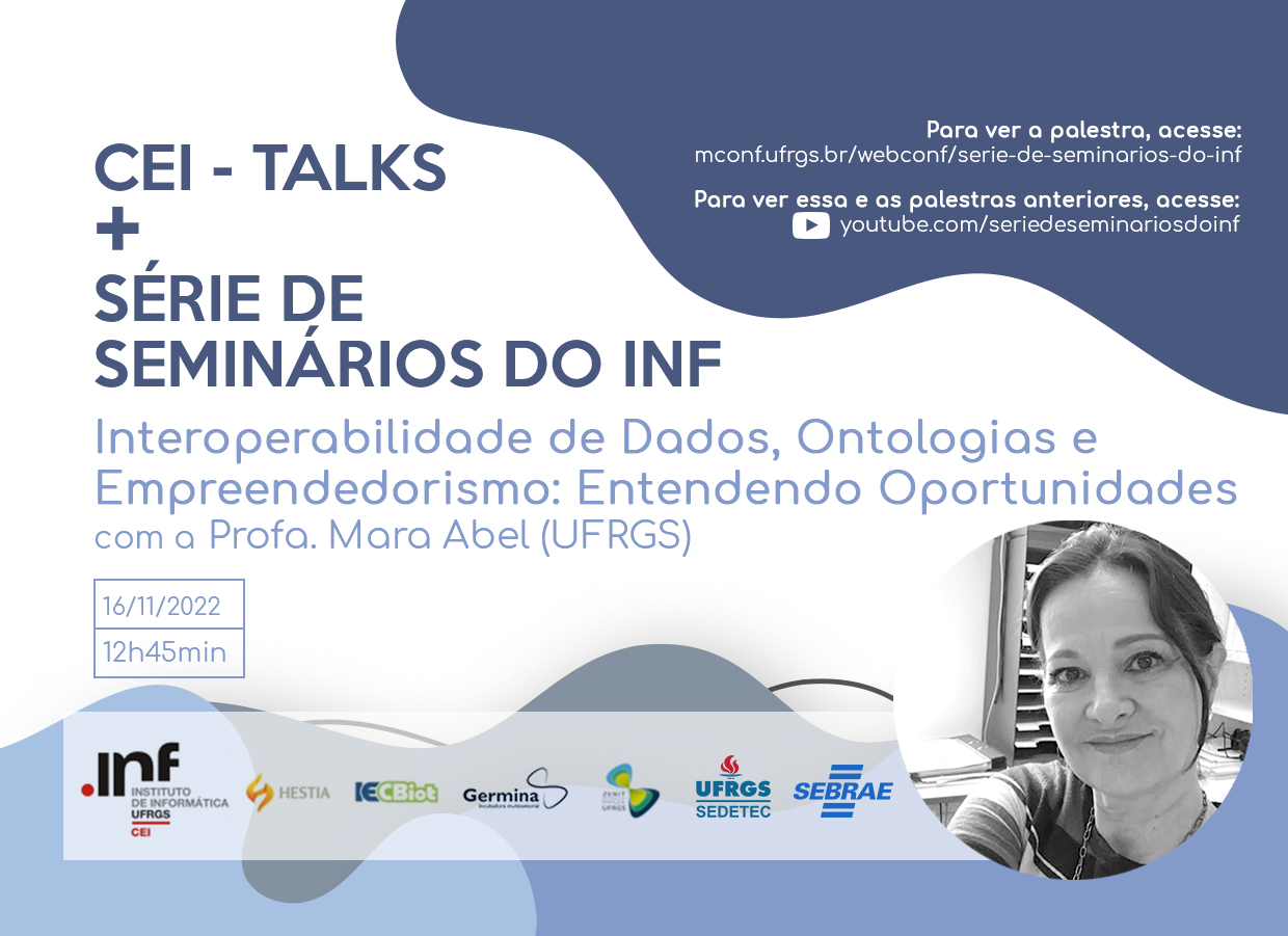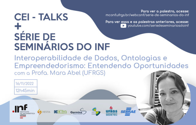 Bio: Mara Abel é geóloga e doutora em Ciência da Computação pela UFRGS. É professora tItular do INF-UFRGS e lider do Grupo de Pesquisa em Sistemas de Computação para E&P em Petróleo, onde coordenou dezenas de projetos