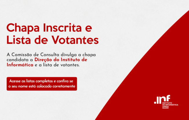 A Comissão de Consulta atribuiu o número 1 a chapa inscrita, composta pelo Professor Luciano Paschoal Gaspary e Professora Viviane Pereira Moreira, candidatos a Diretor e Vice-Diretora, respectivamente. A campanha terá início no próximo dia 25/10/2024