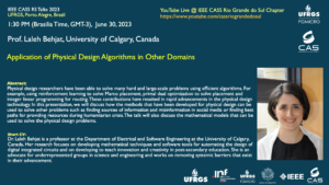 No dia 30/06 às 13h30min (Horário de Brasília) ocorrerá a palestra “Application of Physical Design Algorithms in Other Domains” com a Prof. Laleh Behjat (University of Calgary, Canada ).