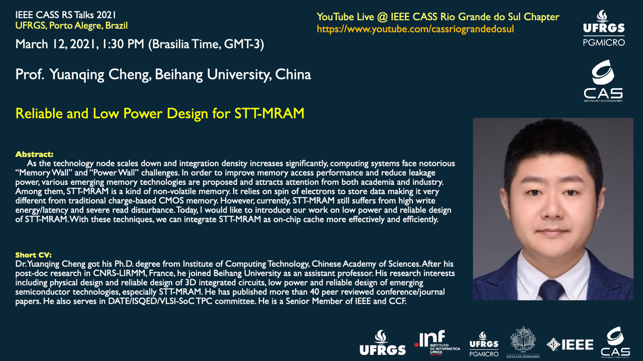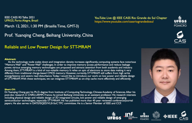 Nesta sexta-feira, dia 12/03 às 13h30min (Horário de Brasília) ocorrerá a palestra “Reliable and Low Power Design for STT-MRAM ” com Prof. Yuanqing Cheng (Beihang University, China).