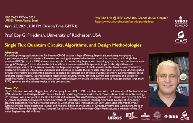 Na próxima sexta-feira, dia 23/04 às 13h30min (Horário de Brasília) ocorrerá a palestra “Single Flux Quantum Circuits, Algorithms, and Design Methodologies” com o Prof. Eby Friedman, (Rochester University, USA).