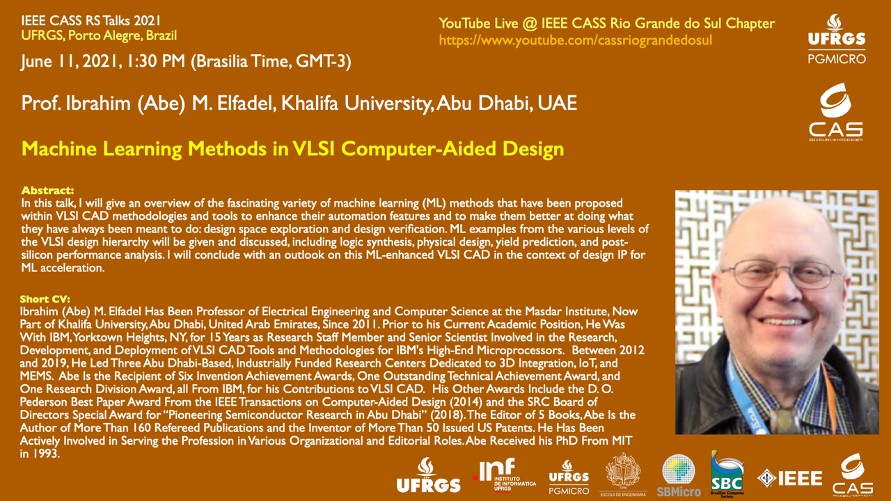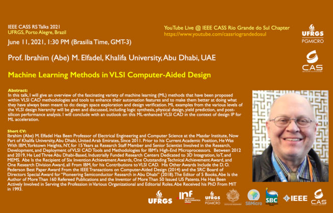Na próxima sexta-feira, dia 11/06 às 13h30min (Horário de Brasília) ocorrerá a palestra “Machine Learning Methods in VLSI CAD” com o Prof. Ibrahim (Abe) Elfadel (Khalifa University, Abu Dhabi, UAE).