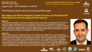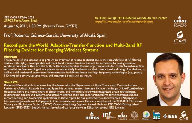 Na próxima sexta-feira, dia 06/08 às 13h30min (Horário de Brasília) ocorrerá a palestra “Reconfigure the World: Adaptive-Transfer-Function and Multi-Band RF Filtering Devices for Emerging Wireless Systems” com o Prof. Roberto Gomez-Garcia (University of Alcalá, Spain).