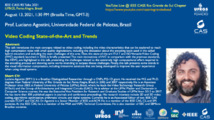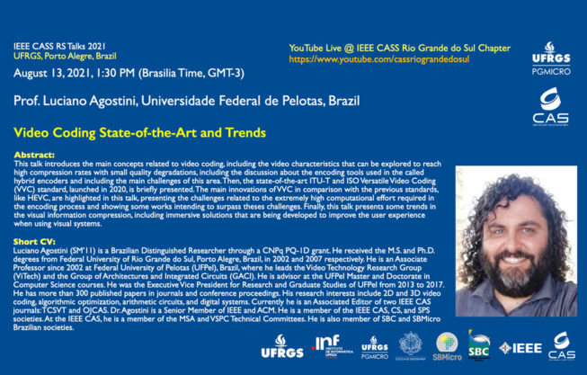 Na próxima sexta-feira, dia 13/08 às 13h30min (Horário de Brasília) ocorrerá a palestra “Video Coding State-of-the-Art and Trends” com o Prof. Luciano Agostini (Universidade Federal do Rio Grande do Sul).