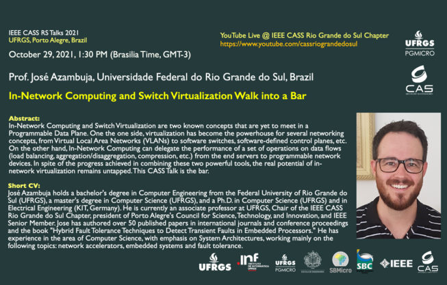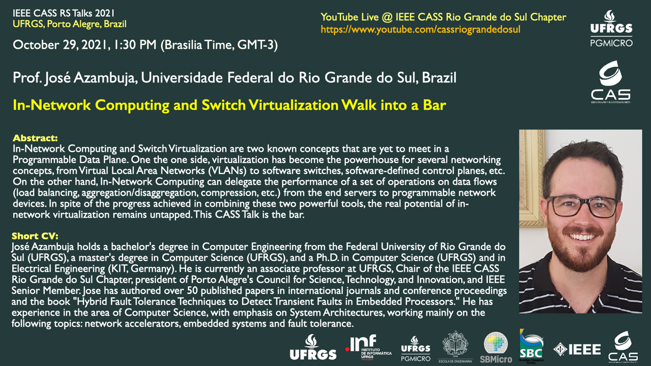 No dia 29/10 às 13h30min (Horário de Brasília) ocorrerá a palestra “In-Network Computing and Switch Virtualization Walk into a Bar” com o Prof. José Azambuja (UFRGS, Brasil ).