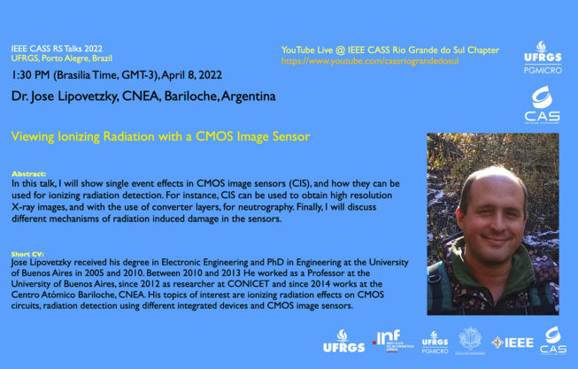 No dia 08/04 às 13h30min (Horário de Brasília) ocorrerá a palestra “Viewing Ionizing Radiation with a CMOS Image Sensor” com Jose Lipoveztky (CNEA / CONICET, Argentina).