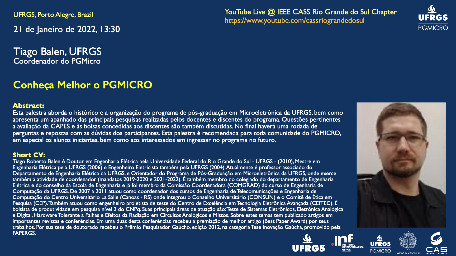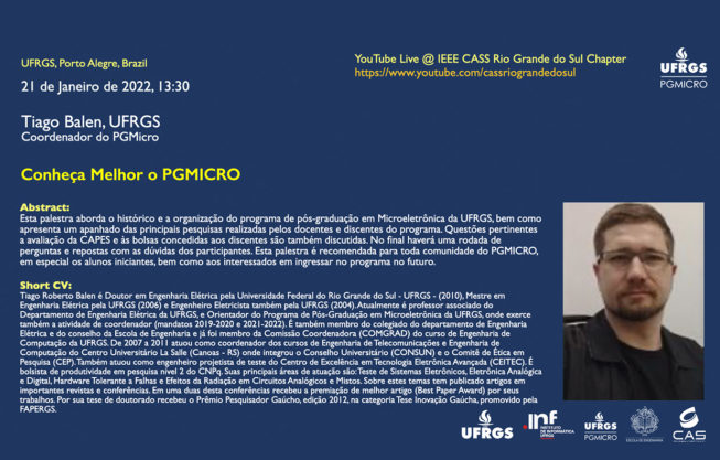 A transmissão será feita pelo canal do YouTube do IEEE CASS Rio Grande do Sul Chapter.
