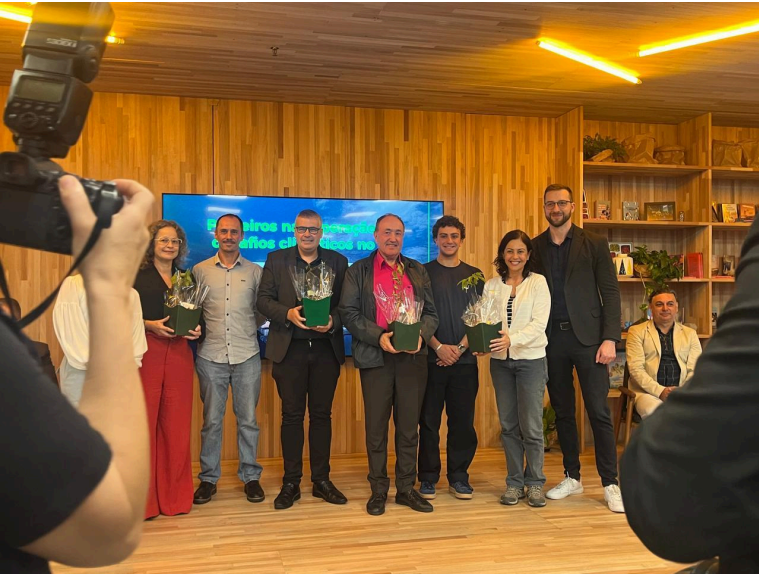 Pesquisadores do Climate IA, junto dos pesquisadores dos demais projetos apoiados pela FAPERGS, recebendo uma muda de árvore nativa do RS para marcar o start do projeto.