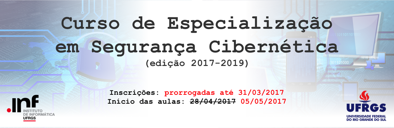 A segurança cibernética envolve a proteção de informações e sistemas contra grandes ameaças, entre elas o terrorismo e a espionagem virtual. Atento a essa necessidade, o INF (Instituto de Informática) da UFRGS oferece a partir de abril o Curso de Especialização em Segurança Cibernética. Com o início das aulas previsto para 5 de maio, o curso proporcionará aos profissionais capacitação e atualização em segurança cibernética, incluindo a proteção de ambientes físicos, de sistemas e da informação. As inscrições foram prorrogadas até 31 de março e podem ser feitas na página do curso.