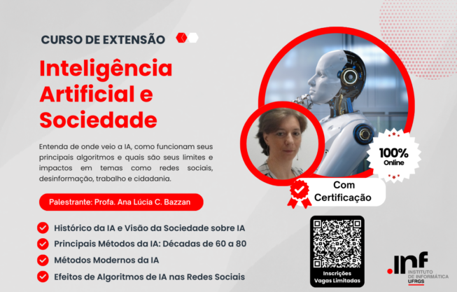 Ana Bazzan é pesquisadora e professora colaboradora no Instituto de Informática da UFRGS, atuando na área de IA desde a década de 1990. Foi líder do grupo de IA da UFRGS por vários anos e tem centenas de publicações na área. Atualmente cursa graduação em História na UFRGS.