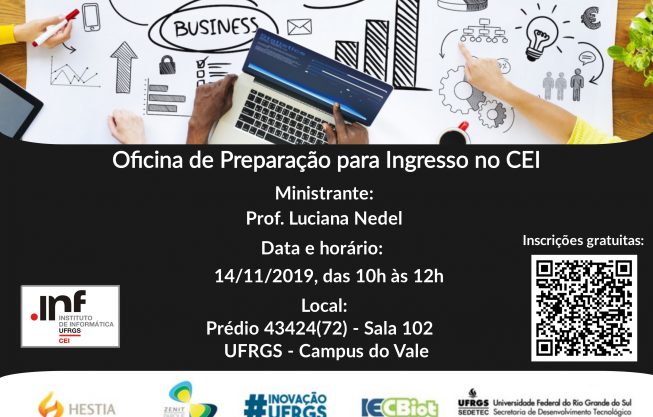 O Centro de Empreendimentos em Informática (CEI) há mais de 20 anos apoia a transformação de ideias empreendedoras em uma oportunidade empresarial concreta. A Oficina de Preparação para o ingresso no CEI é gratuita e destinada a estudantes, startups, empreendedores e demais interessados em desenvolver e investir no seu próprio negócio. A incubadora está focada na área de Tecnologia da Informação e Comunicação (TIC) e proporciona um ecossistema ambiente fértil para o desenvolvimento sólido de novas empresas.