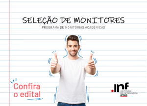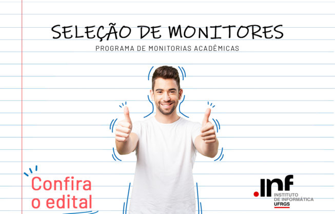 O Instituto de Informática da UFRGS anuncia a abertura do processo de seleção de monitores de atividade de ensino para o período letivo de 2023/1. O edital, divulgado pelo Setor Acadêmico da Gerência Administrativa do INF, prevê a disponibilização de vagas em diferentes disciplinas.