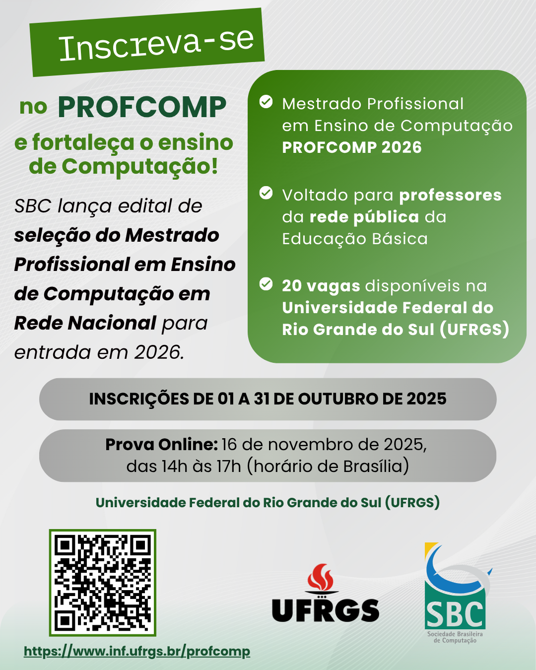 Conheça mais sobre o programa em: https://www.inf.ufrgs.br/profcomp/