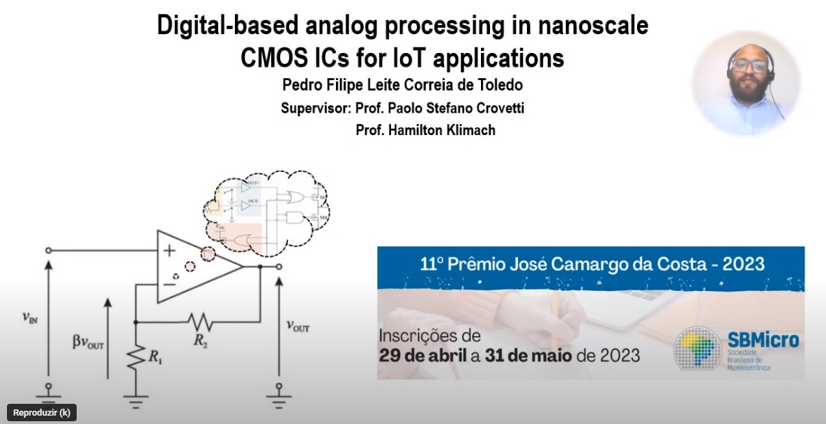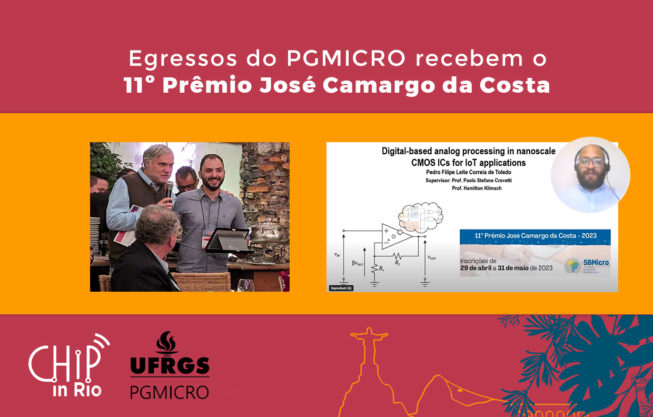 O Prêmio José Camargo da Costa, da Sociedade Brasileira de Microeletrônica (SBMICRO), é concedido anualmente às melhores teses e dissertações na área de microeletrônica defendidas no Brasil. Nesta edição do prêmio, os egressos do PGMICRO Pedro Filipe Leite Correia de Toledo (doutorado) e Tulio Pereira Bitencourt (mestrado) receberam o prêmio de melhor tese de doutorado e melhor dissertação de mestrado na categoria Projeto, CAD e Testes de Circuitos Integrados. Os prêmios foram entregues no evento Chip in Rio 2023.