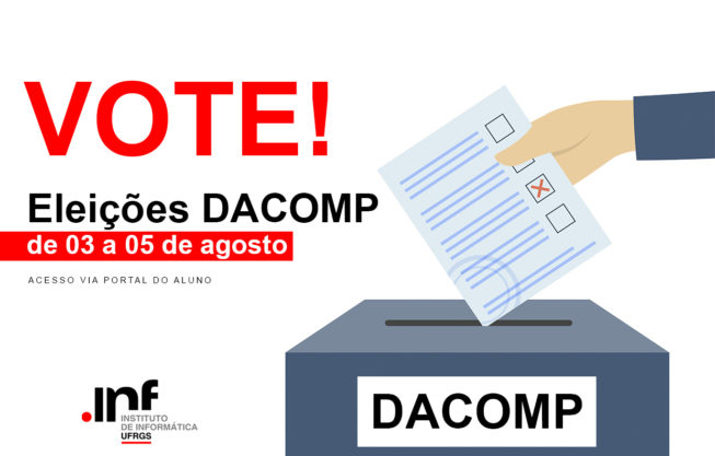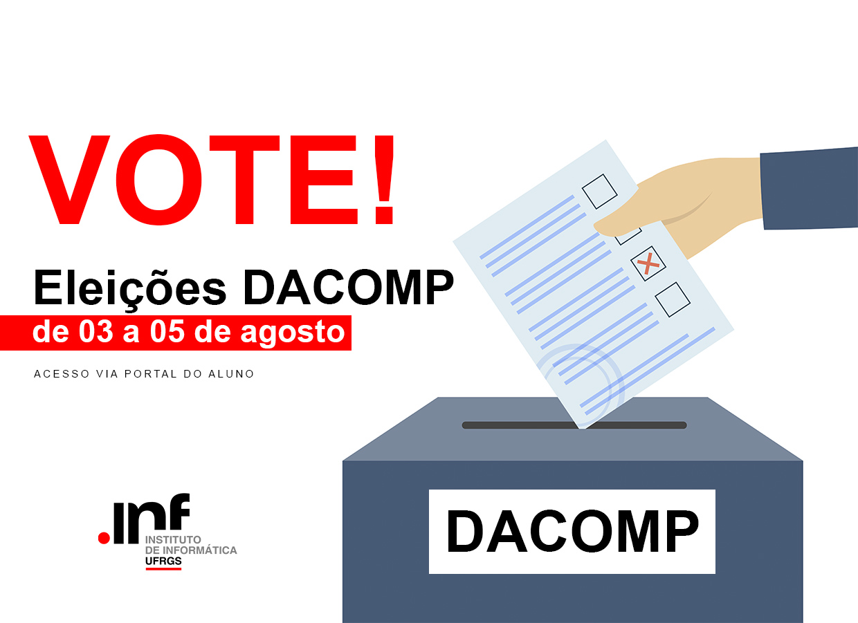 As novas eleições para a Diretoria Executiva e Representação Discente dos órgãos colegiados do Instituto de Informática, serão realizadas nos dias 03, 04 e 05 de agosto de 2022.