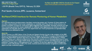 No dia 23 de fevereiro às 13:30h (Horário de Brasília) ocorrerá a palestra “Bio/Nano/CMOS Interfaces for Remote Monitoring of Human Metabolism” com Prof. Sandro Carrara, EPFL Lausanne, Switzerland