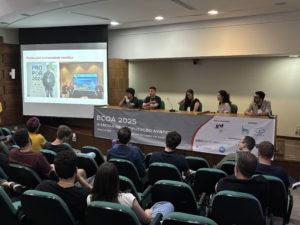O dia foi finalizado com o painel “Bastidores do Doutorado: Pesquisas e Perspectivas”, moderado por Gabriel Nazar e com a presença de José Henrique Lima Marques, Rafael Oleques Nunes, Júlia da Rocha Junqueira e Letícia dos Santos, que compartilharam suas trajetórias acadêmicas, inspirando reflexões sobre o doutorado em computação como opção de carreira na academia ou na indústria, ao dialogarem sobre as estratégias que adotaram para equilibrar vida acadêmica e pessoal.