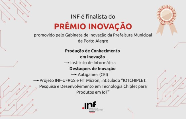 É com imensa alegria e orgulho que compartilhamos uma conquista coletiva! O Instituto de Informática da UFRGS é um dos finalistas do Prêmio Inovação 2025, da Prefeitura de Porto Alegre!