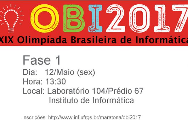 O Instituto de Informática sedia nesta sexta-feira (12) a Fase 1 da edição de 2017 da Olimpíada Brasileira de Informática (OBI2017). Se você está cursando o primeiro ano do primeiro curso de graduação (atualmente no 1º ou 2º semestre), você está habilitado a participar!